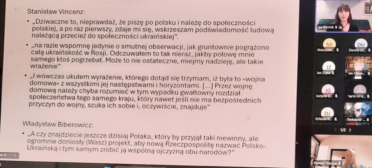 25 лютого 2026 року в рамках діяльності «Майстерні Станіслава Вінценза» Вроцлавського університету відбулася надзвичайно цікава онлайн-зустріч, присвячена маловідомому, але дуже промовистому фрагменту спадщини письменника — його багаторічному листуванню з українським громадським діячем Владиславом Біберовичем (Władysław Biberowicz).