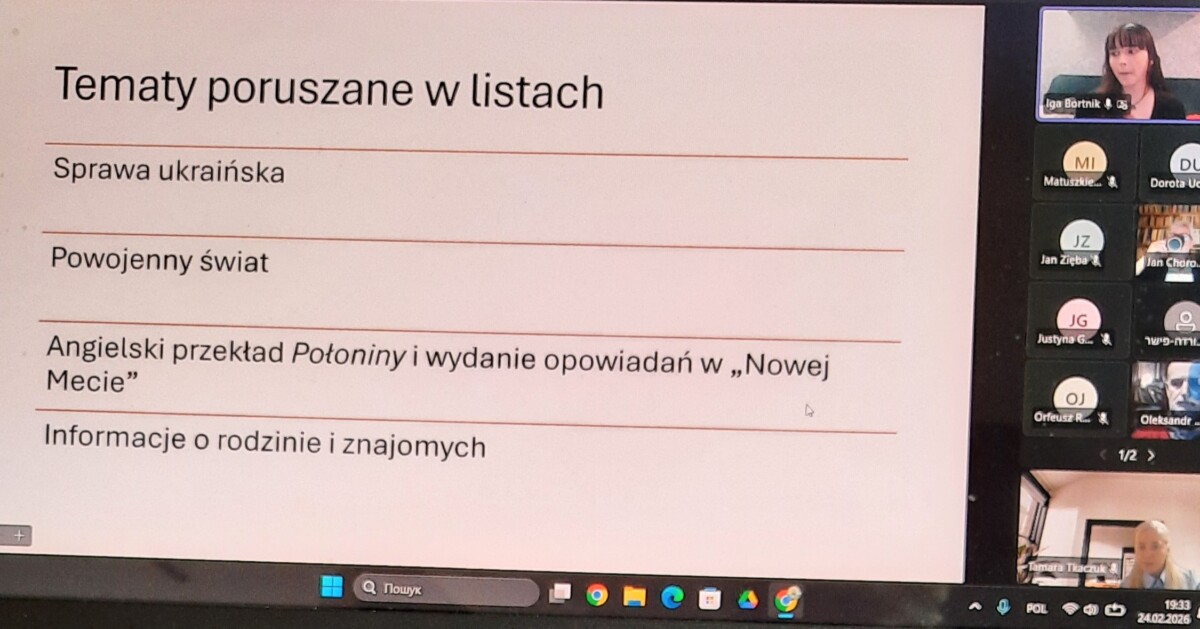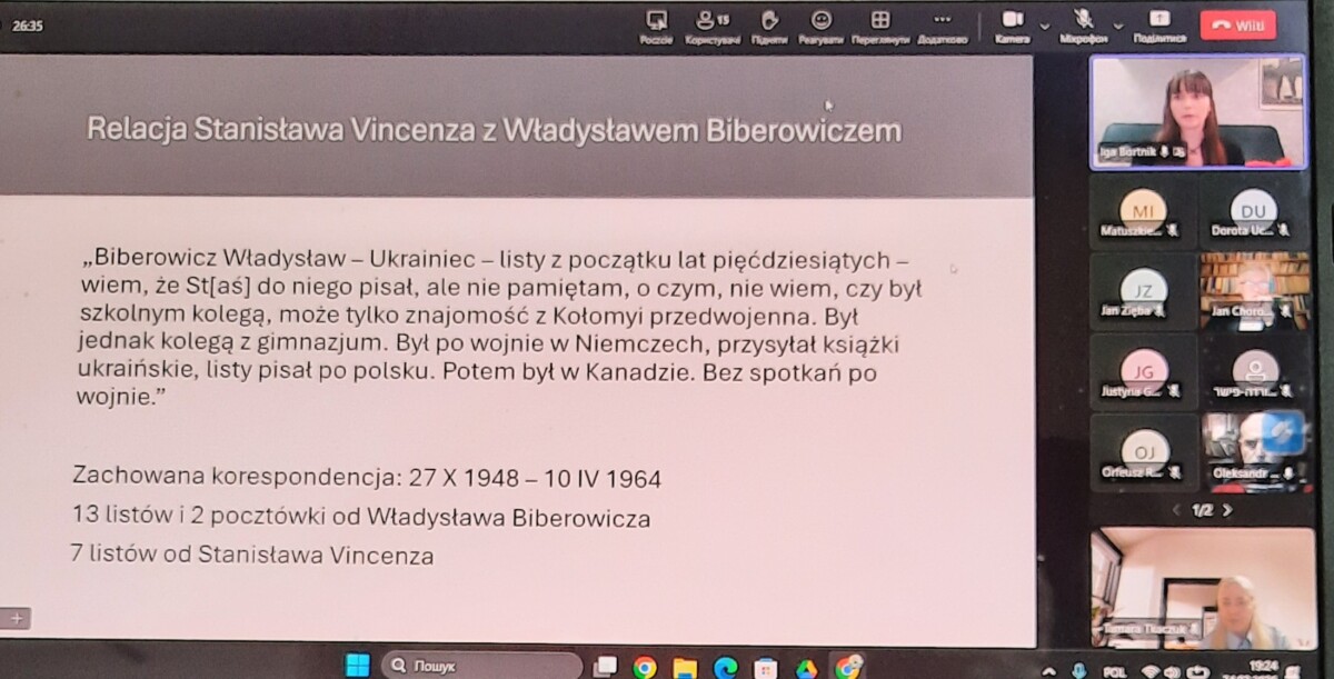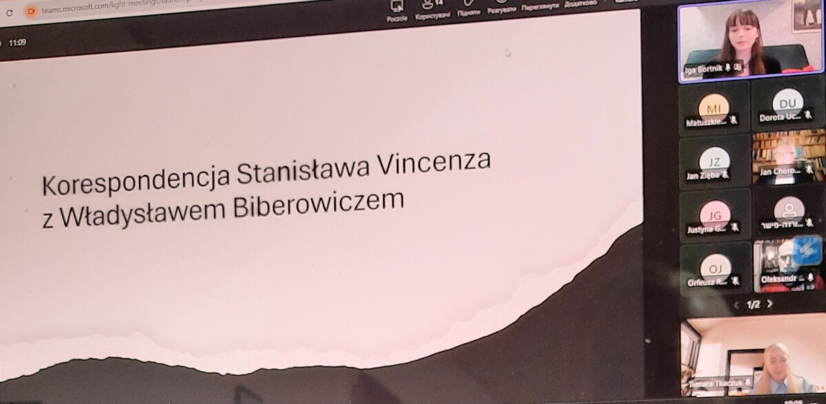25 лютого 2026 року в рамках діяльності «Майстерні Станіслава Вінценза» Вроцлавського університету відбулася надзвичайно цікава онлайн-зустріч, присвячена маловідомому, але дуже промовистому фрагменту спадщини письменника — його багаторічному листуванню з українським громадським діячем Владиславом Біберовичем (Władysław Biberowicz).