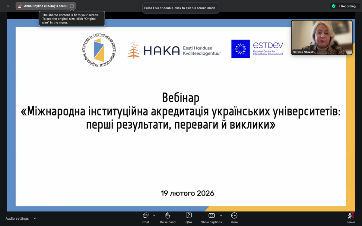 Данило Рега і Тамара Ткачук взяли участь у вебінарі «Міжнародна інституційна акредитація українських університетів: перші результати, переваги й виклики»