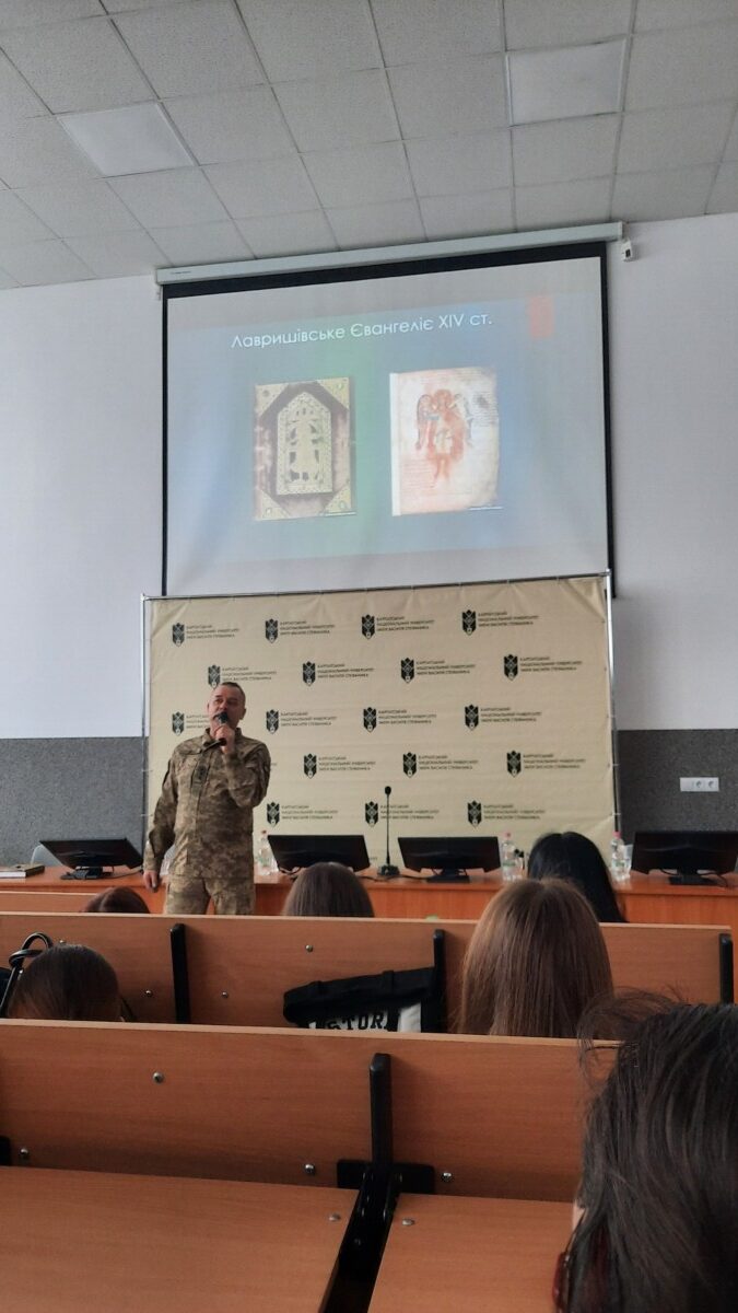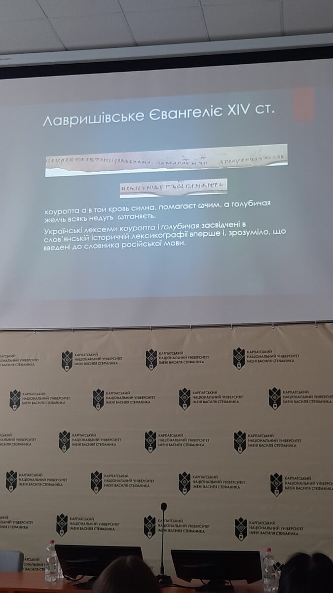 Лектор окреслив роль церковнослов’янської мовної традиції у становленні писемності на українських землях, проаналізував мовні особливості давніх пам’яток і наголосив на взаємодії книжної та народнорозмовної стихій, що поступово формували мовне обличчя української культури.